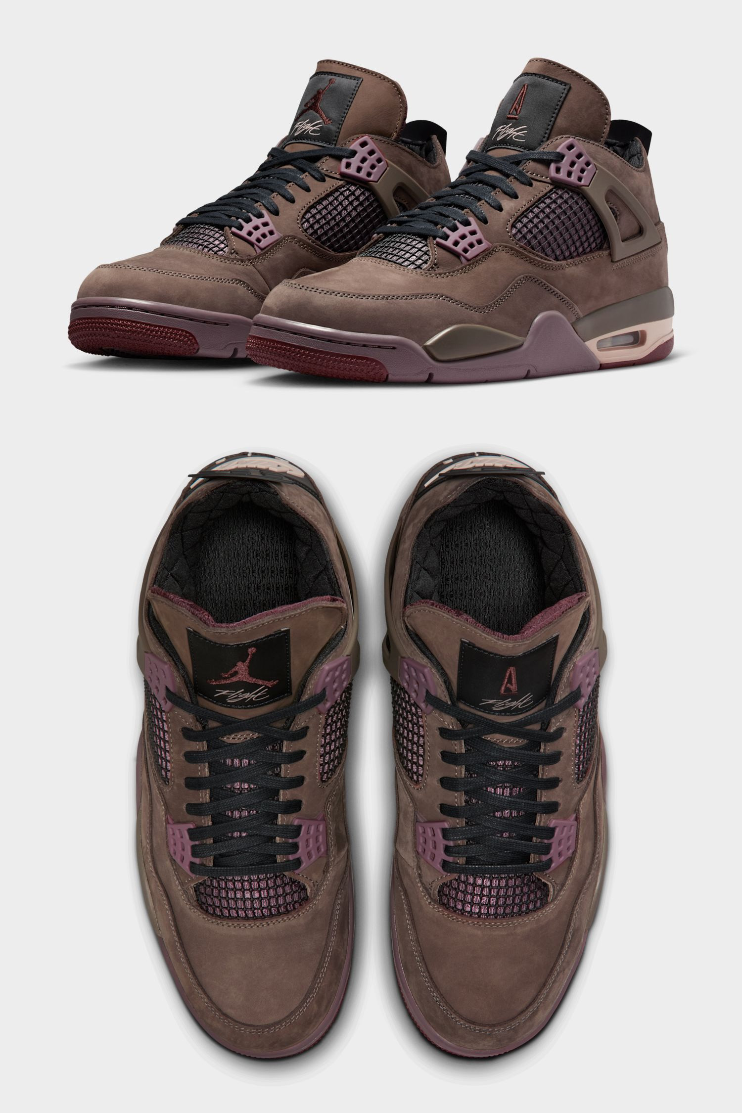 Der A Ma Maniére x Air Jordan 4 „Dark Mocha“ (Stylecode: IF3102-200) bringt die charakteristische Boutique-Ästhetik aus Atlanta auf eine der ikonischsten Silhouetten von Jordan Brand und kombiniert subtilen Luxus mit einer erwachsen-tragbaren Farbwelt. A Ma Maniére, bekannt für seine storytelling-getriebenen Kollaborationen, verpasst dem AJ4 ein tiefes Dark Mocha-Suede-Upper das von zarten Bronze Eclipse, Black und Violet Ore-Akzenten ergänzt wird wodurch der Sneaker sowohl klassisch als auch edel wirkt. Typische AMM-Details wie ein gesteppter Innenliner luxuriöse Materialien eine raffinierte Netzung und dezente Branding-Elemente unterstreichen das Premium-Feeling und erzählen die Geschichte von „Built For This“ – der Gefühl von Anerkennung und stilistischer Reife nach harter Arbeit.