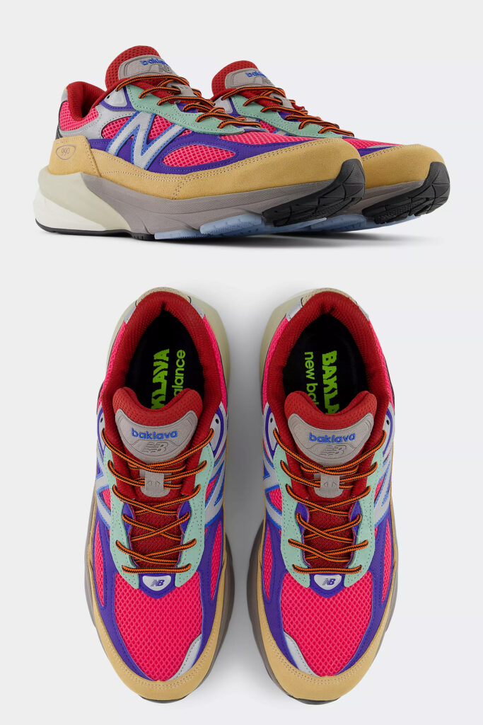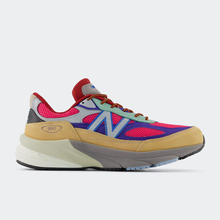 Mit dem Stylecode U990AT6 bringt Action Bronson seine dritte Kollabo mit New Balance an den Start – diesmal unter dem Namen „Amazõnia“. Der 990v6 Made in USA kommt in einem wilden Mix aus Hi-Pink, Royal Blue, Beige und sattem Burgunder daher. Das Upper kombiniert Mesh, Nubuck und synthetische Overlays, während die FuelCell-Midsole für maximalen Komfort sorgt. Typisch Bronson: auffällige Rope Laces, Baklava-Branding auf Zunge und Insole sowie reflektierende Details für den Extra-Glow.