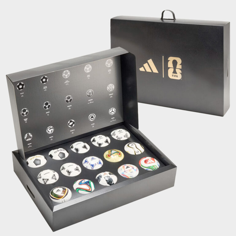 Das adidas HIST BALL SET M (Stylecode JN2093) ist ein echtes Sammlerstück für alle, die Fußballgeschichte lieben. In der Box stecken 15 Mini-Replicas der offiziellen WM-Matchbälle von 1970 bis 2026, von legendären Klassikern wie dem Telstar bis zum brandneuen Trionda, dem offiziellen Ball der WM 2026. adidas feiert damit über fünf Jahrzehnte World-Cup-Historie und zeigt, wie sich Design, Farbe und Technik im Laufe der Jahre verändert haben. Die Minis bestehen aus einem soften Foam-Core, müssen also nicht aufgepumpt werden, und sind perfekt fürs Regal oder den Schreibtisch statt für den Bolzplatz. Jede Kugel trägt die originalgetreuen Details des jeweiligen Turnierballs, was das Set zu einem echten Highlight für Nostalgiker und adidas-Fans macht.