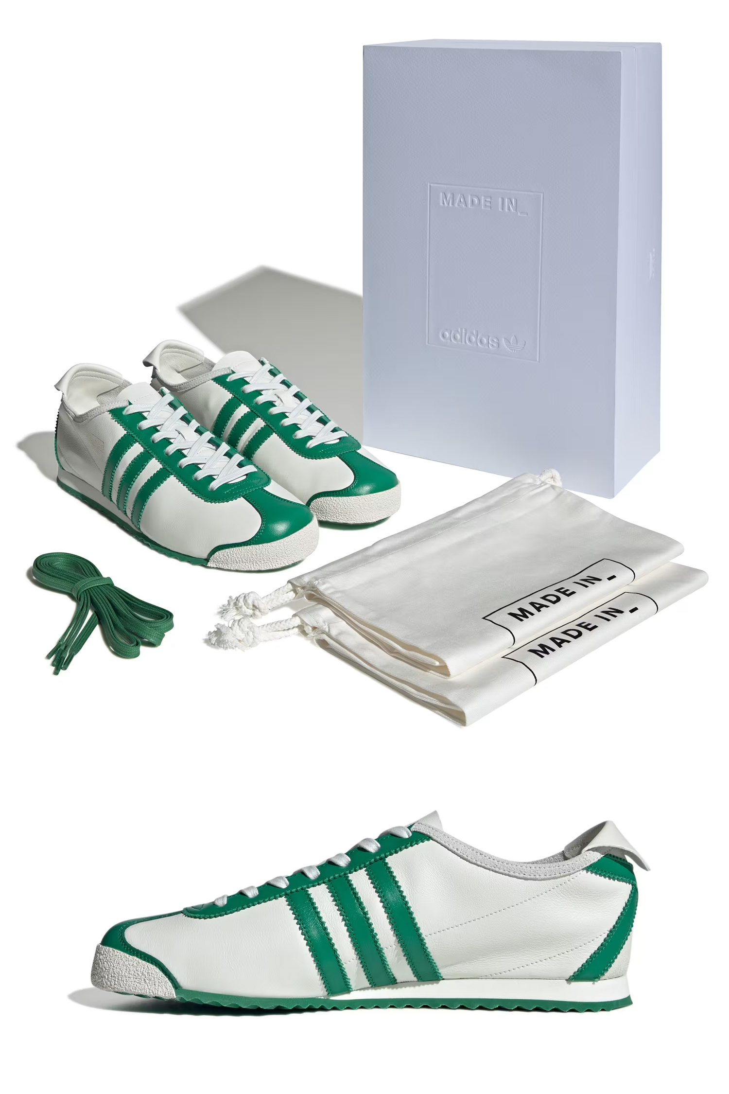 Mit dem adidas Italia 60s (Stylecode JR8377) feiert ein echtes Stück Sneaker-Geschichte sein Comeback – im edlen Core White/Green/Cream White Look. Inspiriert vom Original von 1959, verbindet dieser Retro-Runner den Spirit der 60er mit feiner italienischer Handwerkskunst. Das Obermaterial aus dezent genarbtem Premium-Leder bringt zusammen mit dem Lederfutter und der klassischen Gummisohle authentischen Vintage-Flair. Highlight: das metallene „adidas Italia“-Branding, das dem minimalistischen Design ein edles Finish verpasst.