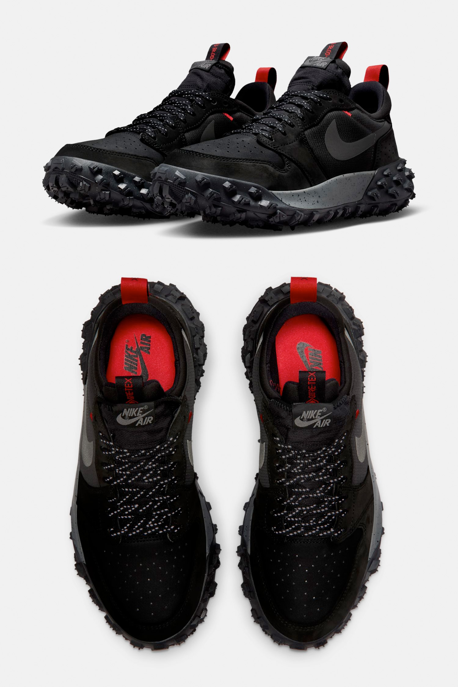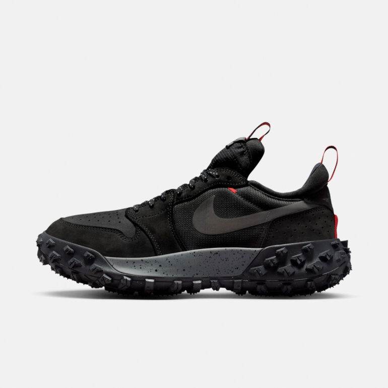 Der Air Jordan 1 Element Low „Black / Iron Grey / Challenge Red“ trägt den Stylecode FV4227 002 und verbindet Basketball DNA mit Outdoor Tauglichkeit. In dieser Variante dominiert Schwarz, ergänzt um Eisengrau und dunkles Rauchgrau, gepaart mit auffälligen roten Akzenten an den Pull Tabs und Labels. Das Upper wird aus Ripstop Mesh mit Nubuk Overlays gefertigt und besitzt eine GORE TEX Membran, sodass du bei Regen nicht gleich aufgeben musst. Die Swooshes erhalten reflektierende 3M Details, die bei Nacht ins Auge springen. Die Mittelsohle ist leicht gesprenkelt und die Außensohle zeigt ein grobes Profil, ein perfektes Grip Design für Stadt und Trail zugleich.