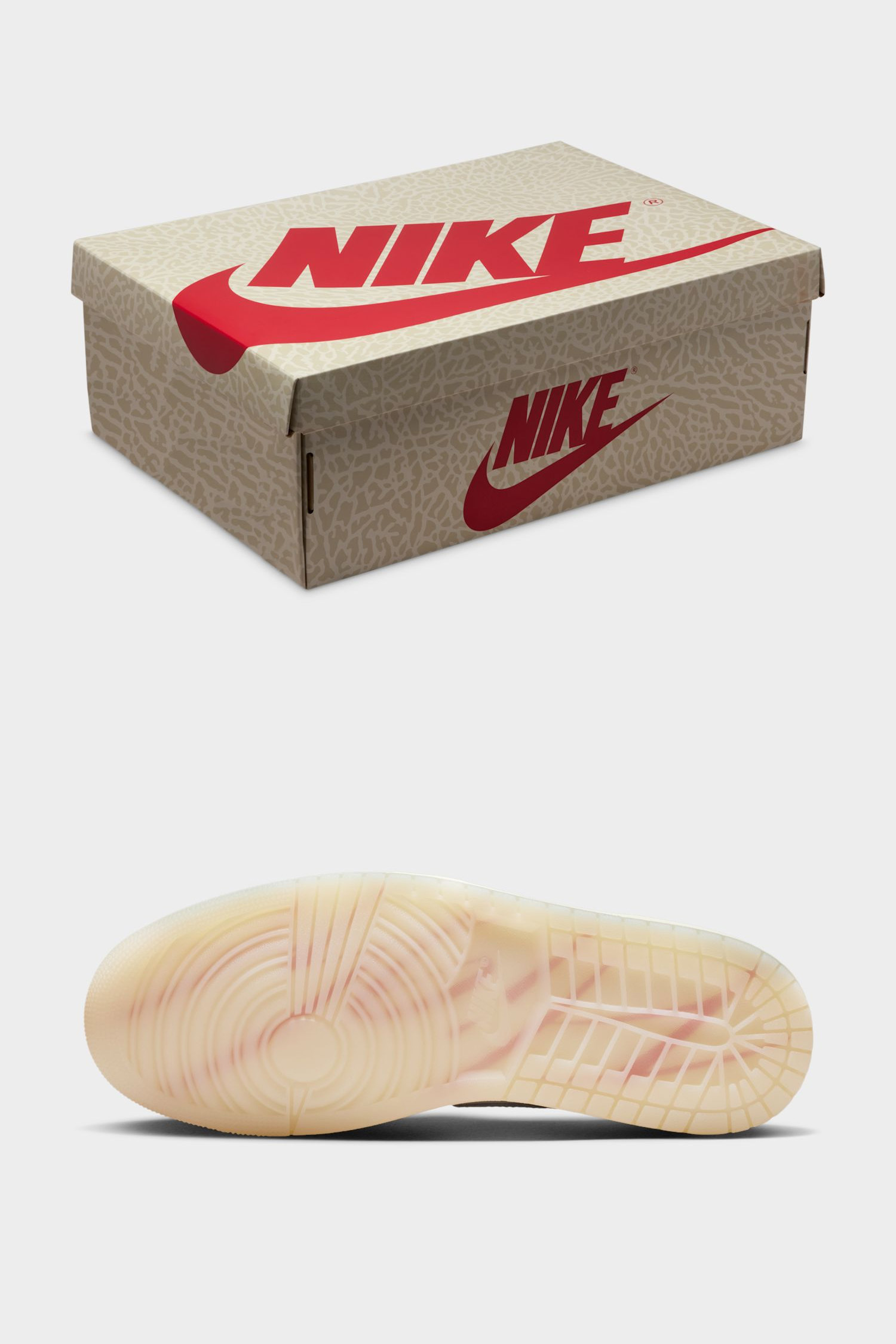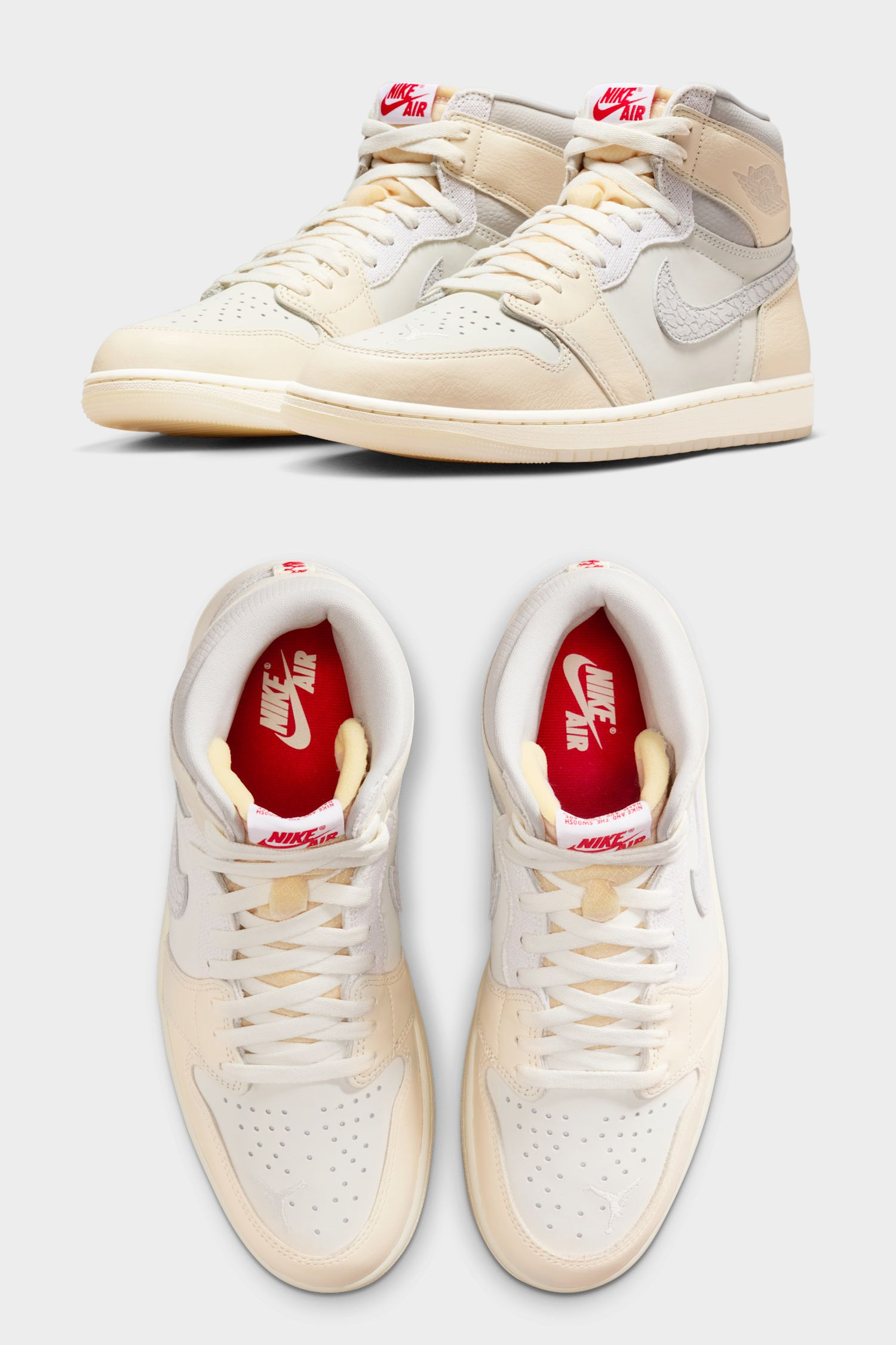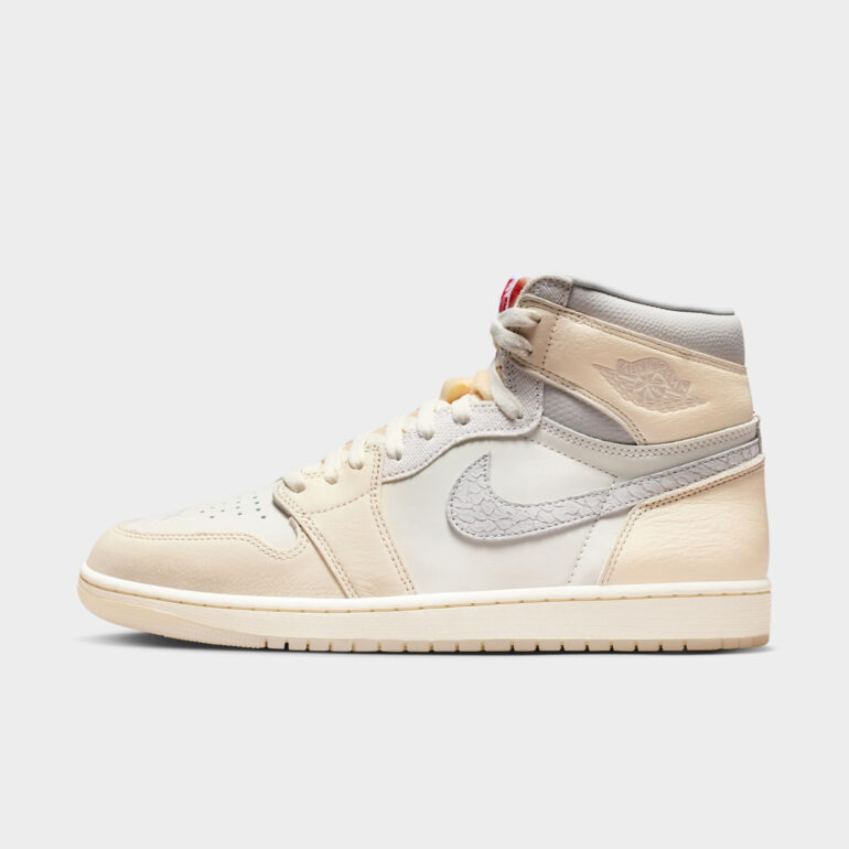Der Air Jordan 1 Retro High OG Sail University Red (Stylecode: IH4363 100) bringt Ende 2025 frischen Wind in die OG-Linie und bleibt gleichzeitig tief in der Jordan History verankert. Das Upper kombiniert mehrere Off White und Creme Töne wie Sail, Pale Ivory und Coconut Milk, während rote Hits an Ferse, Zunge und Branding für den nötigen Farbkontrast sorgen. Besonders auffällig ist der graue Elephant Print Swoosh, der klar auf das legendäre Muster des Air Jordan 3 anspielt und dem Klassiker einen modernen Twist verpasst. Eine leicht durchsichtige milky Outsole mit Flight Schriftzug, die offene Schaumstoffzunge für den Retro Look und ein kleines Jumpman Logo auf dem Toe Box Patch runden den Mix aus Nostalgie und neuen Ideen perfekt ab.