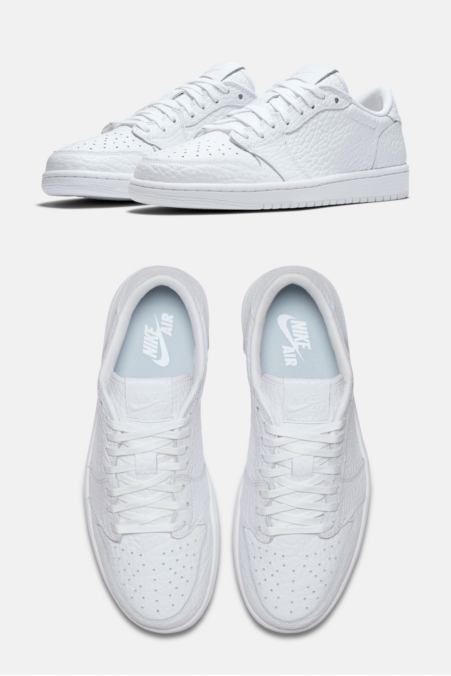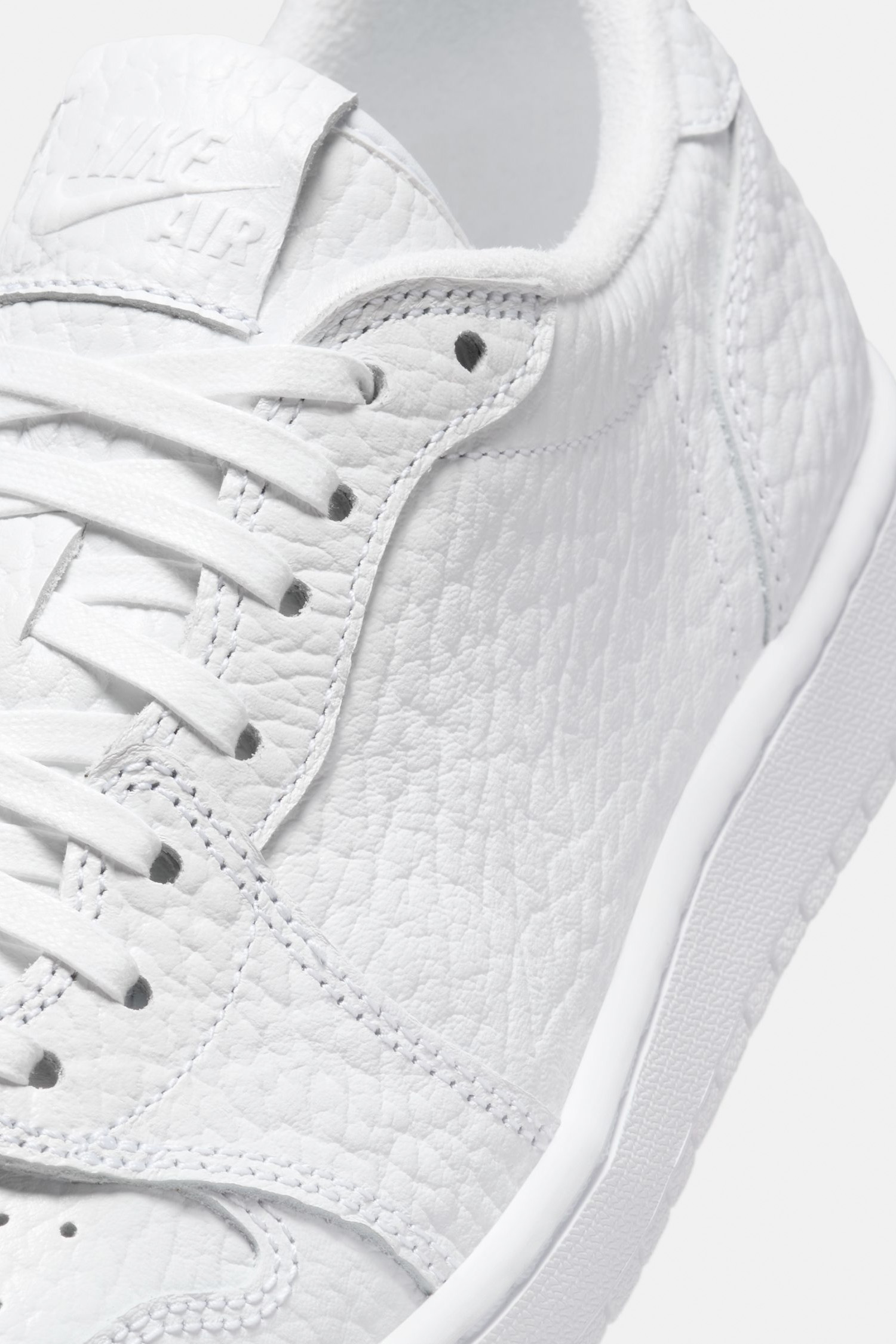 Der Air Jordan 1 Retro Low „Triple White“ No Swoosh (Stylecode 872782 100) lässt den ikonischen Swoosh weg und setzt auf pure Minimalistik und Cleanness. Das Upper besteht aus hochwertigem getumbeltem Leder in strahlendem Weiß mit tonalem Branding, nur das eingeprägte Wings Logo und das klassische Nike Air Tongue Label sorgen für Wiedererkennung. Ohne auffällige Logos wirkt der Sneaker fast unauffällig aber unglaublich edel auf der Straße. Das monochrome Design macht ihn zur perfekten Leinwand für jedes Outfit und zeigt wie stark weniger manchmal mehr ist.