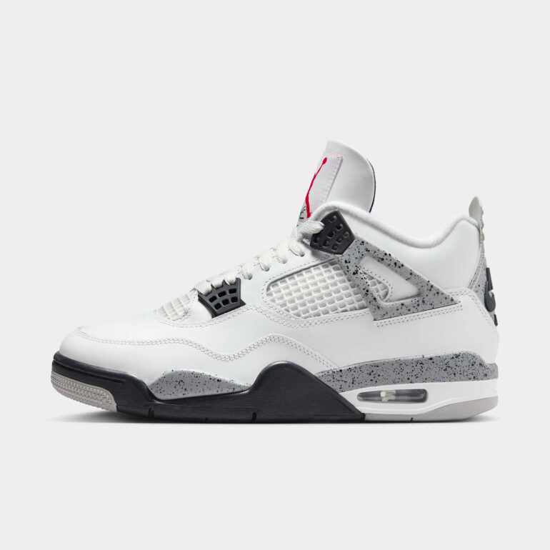 Der legendäre Air Jordan 4 „White Cement“ kehrt 2025 zurück – und zwar so OG wie seit ’89 nicht mehr. Mit dem Stylecode FV5029-100 kommt der Klassiker im Colorway Summit White/Fire Red-Tech Grey-Black und bringt alles mit, was Fans lieben: Premium-Leder, speckled Cement-Details auf Midsole und Wings, schwarze Akzente und natürlich das „Nike Air“-Branding an der Ferse . Die Form wurde originalgetreu überarbeitet – von der Toe-Box bis zum Collar – und liefert den authentischen Look, den Sammler feiern. Der Air Jordan 4 „White Cement“ hatte seit seinem OG-Debüt 1989 mehrere Releases. Hier ist eine Übersicht der wichtigsten Drops: