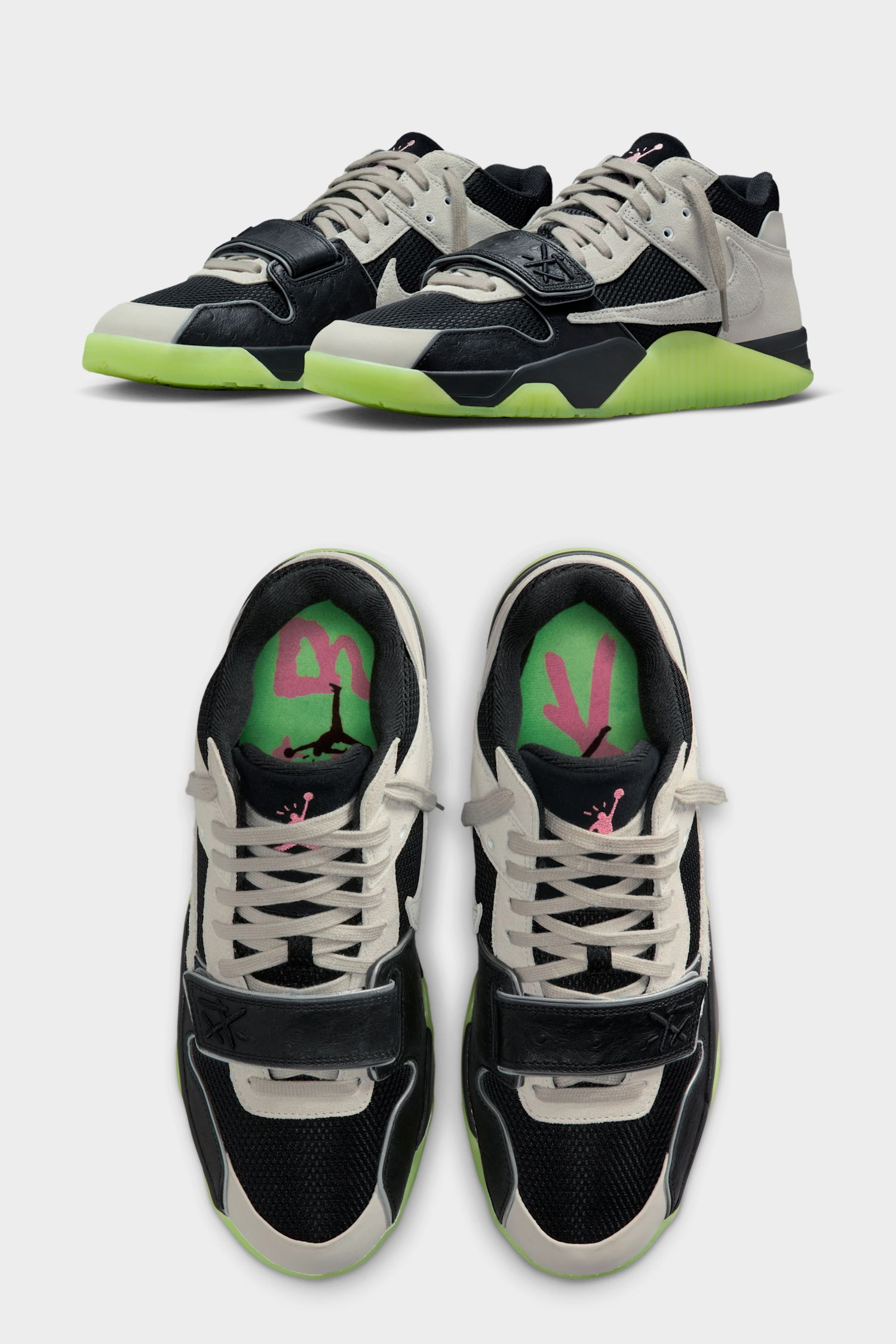 Der Jordan Jumpman Jack TR „Illusion Green“ von Travis Scott und Chase B mit dem Stylecode IH7971-001 bringt pünktlich zum Jahresende 2025 frischen Wind in das noch junge Signature-Universum rund um La Flame. Der Colorway setzt auf ein überwiegend schwarzes Upper aus atmungsaktivem Mesh und robusten Overlays in Night Silver und Anthracite, während Illusion Green und Coral Chalk gezielt Akzente setzen und dem Sneaker seinen futuristischen Charakter verleihen. Besonders auffällig ist die Glow in the Dark Outsole, die den Performance-Ansatz des Modells unterstreicht und gleichzeitig perfekt zum experimentellen Stil von Chase B passt. Typische Cactus Jack Details, der markante Strap über dem Mittelfuß und die moderne Jumpman Jack Silhouette verbinden Basketball DNA mit Streetwear Attitüde und machen den Schuh zu einem echten Statement Piece für Travis Scott Fans und Sammler.