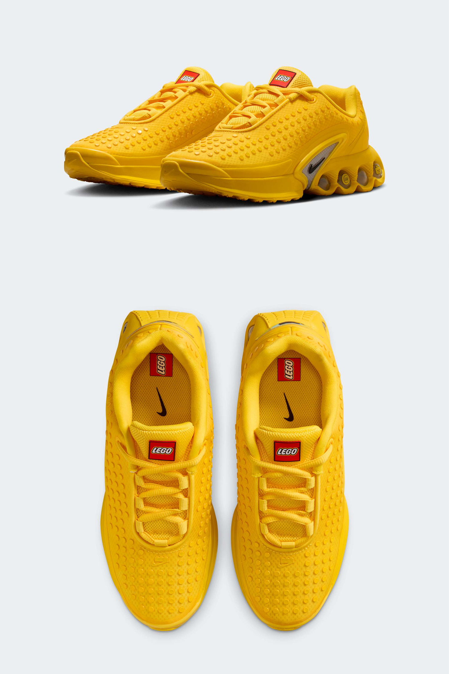 Der LEGO x Nike Air Max Dn „Tour Yellow“ erscheint am 2. August 2025 in Kids-Sizes.