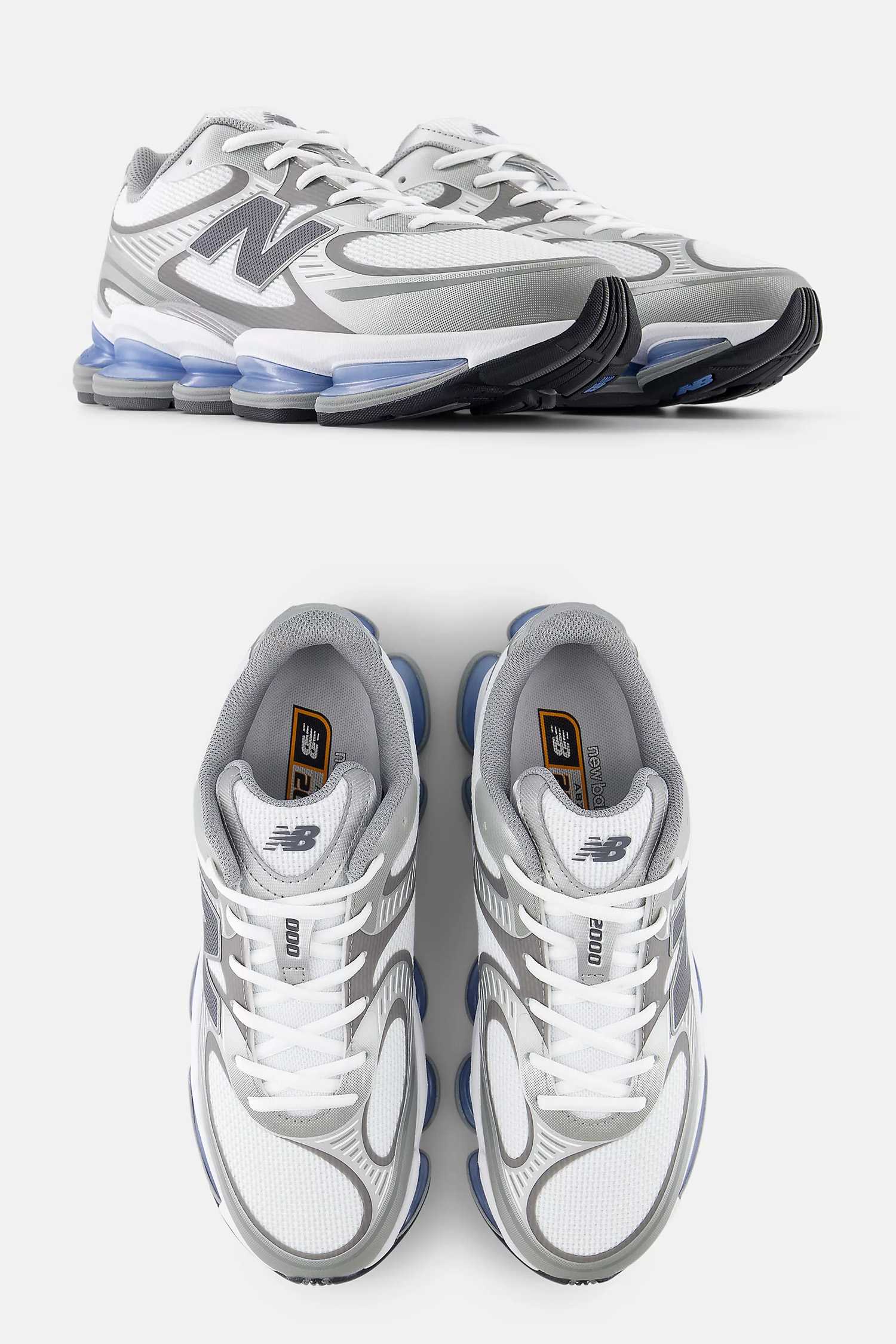Der New Balance ABZORB 2000 kommt mit Stylecode U2000AA im sauberen White/Grey Blue beziehungsweise Silver Metallic Colorway. Die klare Mesh-Basis, silberne synthetische Overlays und reflektierende Details verleihen dem Sneaker ordentlich Tech-Vibe. Unter der Sohle sorgt das sichtbare ABZORB- und ABZORB-SBS-System für soften Komfort mit futuristischem Touch, vor allem die transluzenten blauen Pods stechen ins Auge. Die Kombination aus minimalistischer Upper-Optik und massiver Tech-Sohle bringt echte Y2K-Vibes zurück.