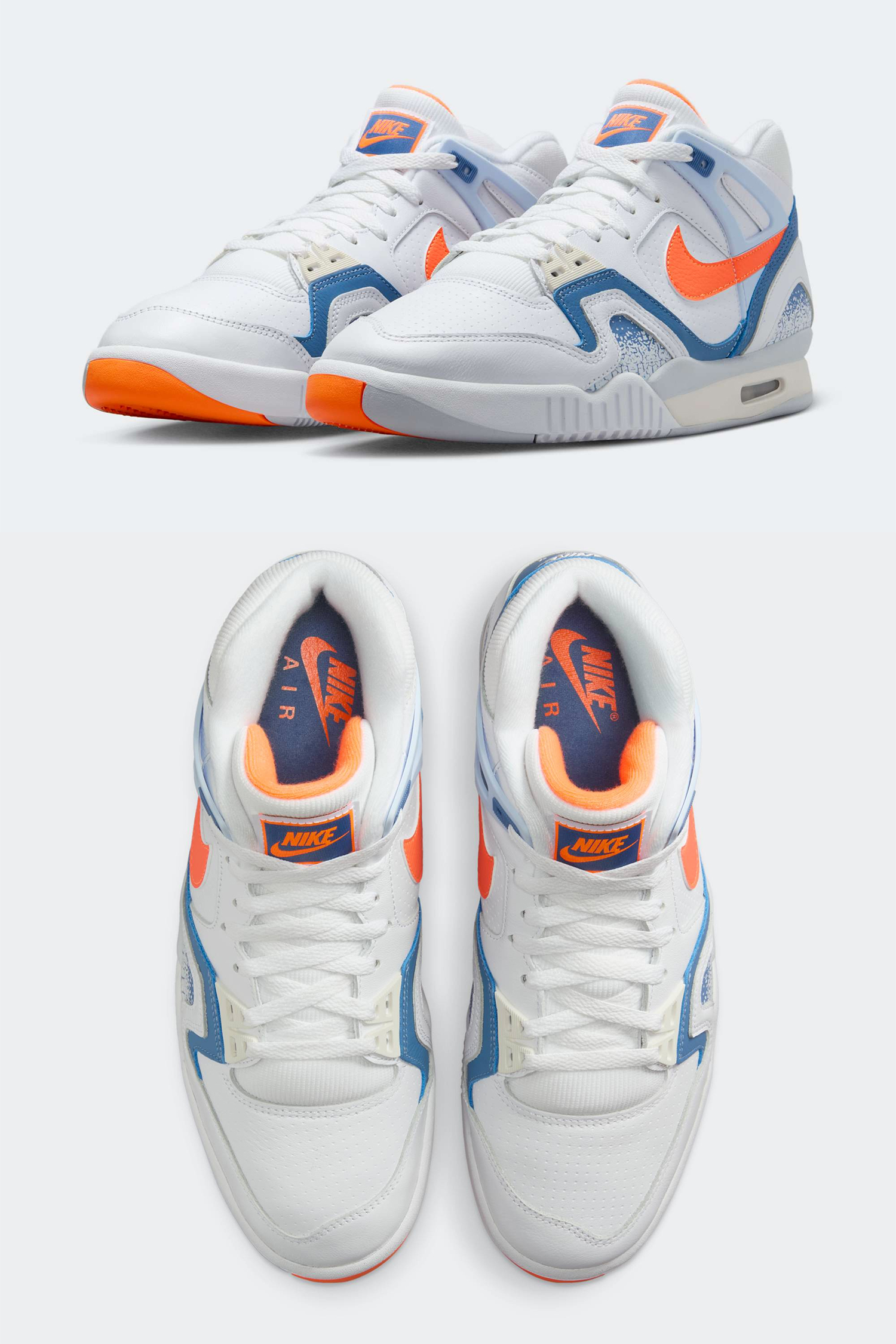Der Nike Air Tech Challenge II (Stylecode FZ9033-101) meldet sich in der „Tart“ Colorway zurück, auch bekannt als „Clay Blue“ oder „Stone Blue“. Mit Sail-Leder, blauen Crackle-Overlays und knalligen Tart-Orange-Akzenten trifft hier Retro-Style auf starke Court-Ästhetik. Die Midsole in Coconut Milk, sichtbare Air-Unit und das klassische Herringbone-Profil bringen den OG-Spirit zurück – genau wie einst bei Tennis-Ikone John McEnroe, der das Modell in den 90ern auf dem Platz rockte.