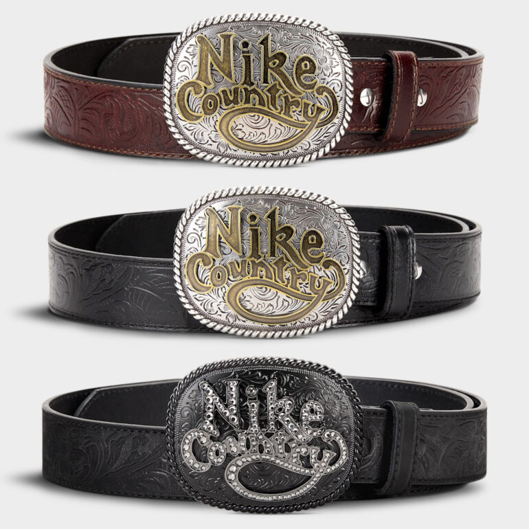 Der Nike Country Belt ist zurück und bringt ein echtes Stück Swoosh-History an den Start. Mitte der 70er entstand das handgezeichnete „Nike Country“-Logo von Geoff Hollister, inspiriert von Rodeo-Ästhetik und Americana-Vibe. Anfang der 2000er hat Nike-Designer Bob Smith das Design aus dem Archiv geholt, neu interpretiert und 2003 als Gürtelschnalle released.