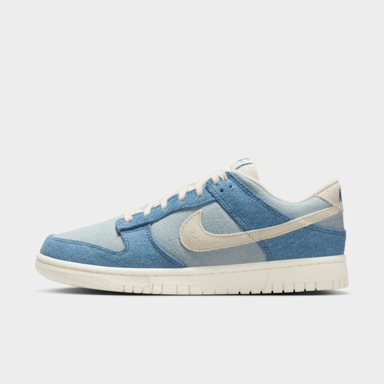 Der Nike Dunk Low Denim (Stylecode IH5073-006) bringt frischen Wind in die Dunk-Linie. Statt dem gewohnten Leder setzt das Upper komplett auf gewaschenen Denim in Smokey Blue und Türkis, kombiniert mit einem weißen Swoosh aus hellem Denim. Zunge, Lining und Stickereien runden den Retro-Vibe ab, während eine weiße Midsole und farblich abgestimmte Laces für einen cleanen Kontrast sorgen. Mit dem zusätzlichen Laces-Set und der griffigen Gummisohle liefert der Dunk die perfekte Kombi aus Style und Funktion.