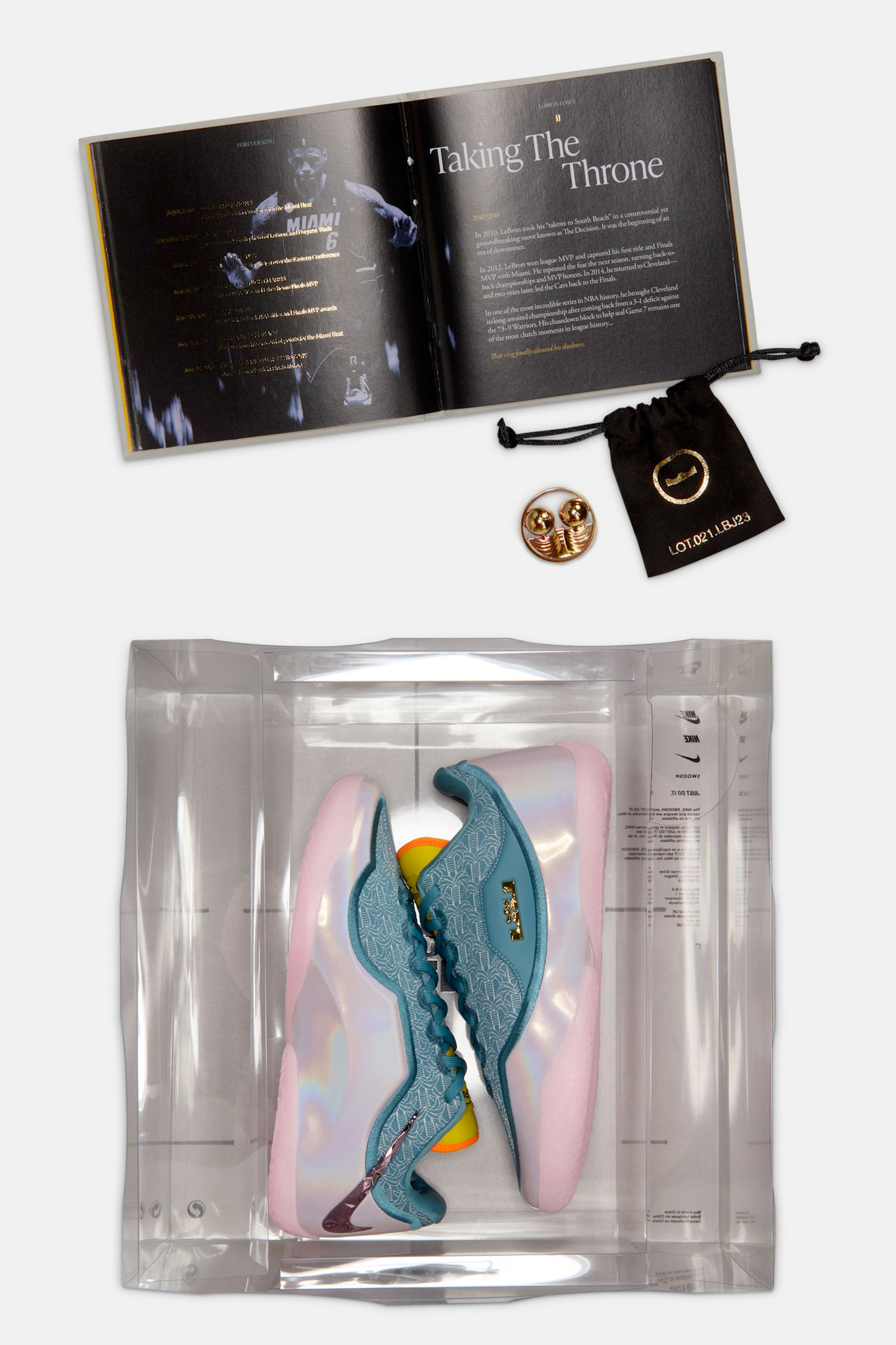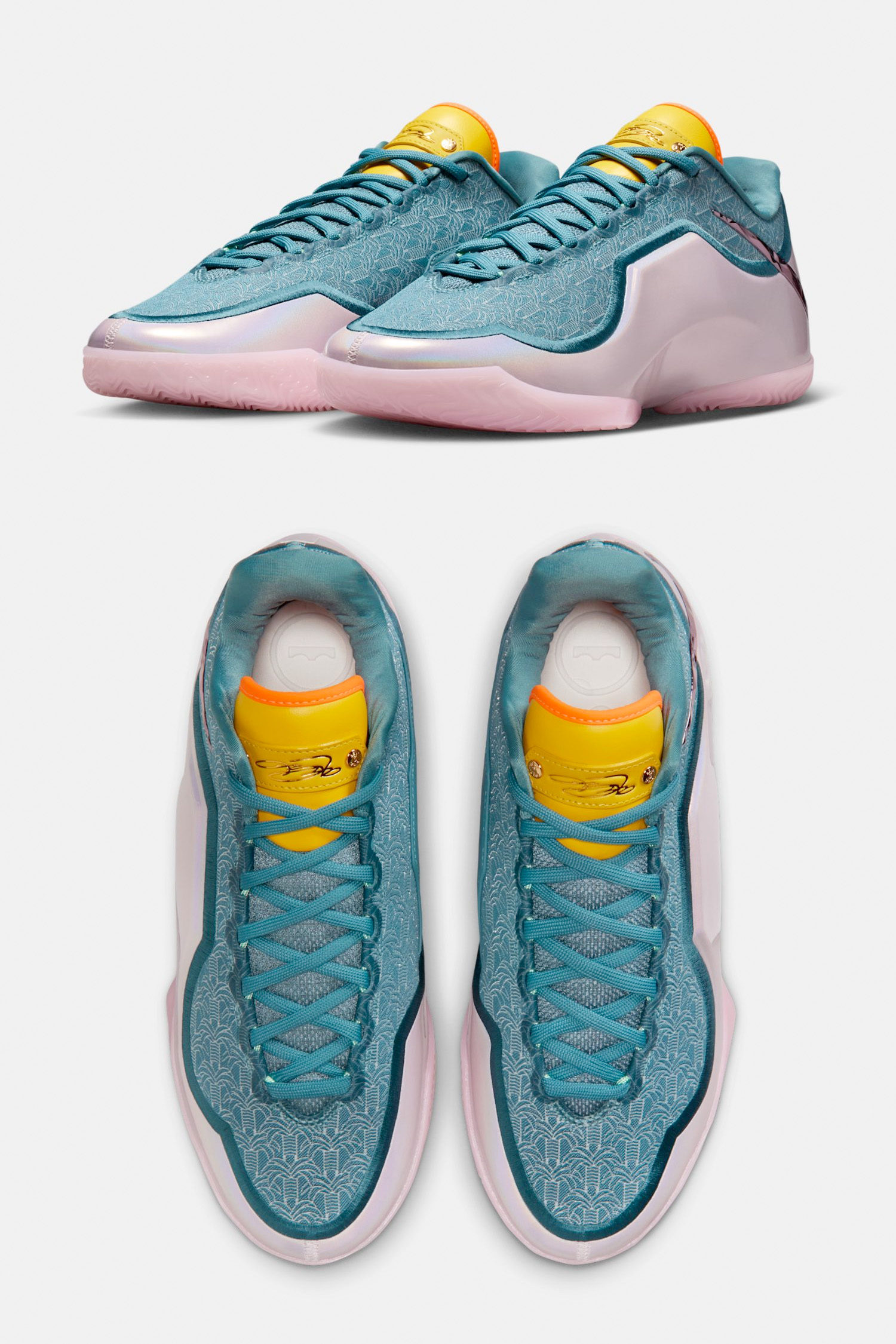 Der Nike LeBron 23 „Miami Twice“ (Stylecode: IH1513-001) bringt den Spirit von South Beach zurück und feiert LeBrons legendäre Zeit in Miami mit einem sommerlichen Mix aus Farbe, Glanz und Geschichte. Das Upper kombiniert atmungsaktives Mesh mit gestickten Palmenmustern und schimmernden Overlays, während der halbtransparente Swoosh an frühere „Crown Jewel“-Designs erinnert. Die Farbkombi aus Smokey Blue, Lightning, Total Orange, Multi-Color und Mint Foam schreit förmlich nach Sonne, Strand und Championship-Energie. Technisch liefert Nike mit einer Drop-In ZoomX-Zwischensohle und einer Carbonfaser-Platte ordentlich Performance-Power, perfekt für explosive Moves auf dem Court. Abgerundet wird das Ganze durch eine pinke Außensohle und eine Special-Edition-Box mit LeBron-Booklet – ein echtes Sammlerstück für Fans des Kings.