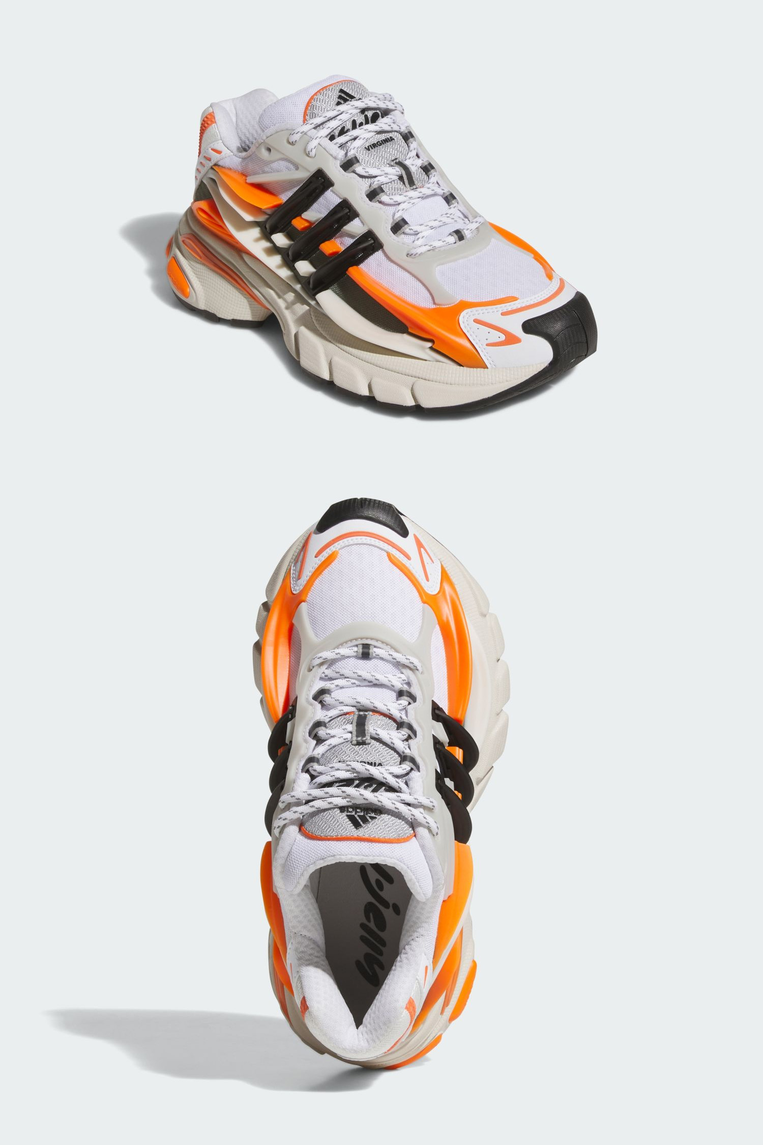 Der Pharrell Williams x adidas Adistar Jellyfish (Stylecode: JP9261) bringt einen wilden Mix aus futuristischem Design und tiefer Meeresinspiration an den Start. Die Silhouette basiert lose auf dem alten Adistar Cushion 3, wurde aber komplett aufgepumpt und mit einer wuchtigen Adiprene-Midsole ausgestattet, die wie ein Piece von der Fashion Week wirkt. Das Upper kombiniert atmungsaktives Mesh mit geschwungenen TPU-Overlays, die fast wie Tentakel aussehen, dazu knallige Orange-Akzente, Olive-Grün und tiefes Schwarz. Auf der Zunge sitzt ein Jellyfish-Logo und die Innensohle trägt den Schriftzug „VIRGINIA“ als Hommage an Pharrells Heimatstaat. Das Modell tauchte erstmals an Pharrells Füßen bei der Paris Fashion Week auf und sorgte dort für ordentlich Gesprächsstoff, weil es irgendwo zwischen Sneaker und tragbarer Skulptur schwebt.