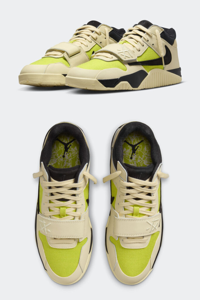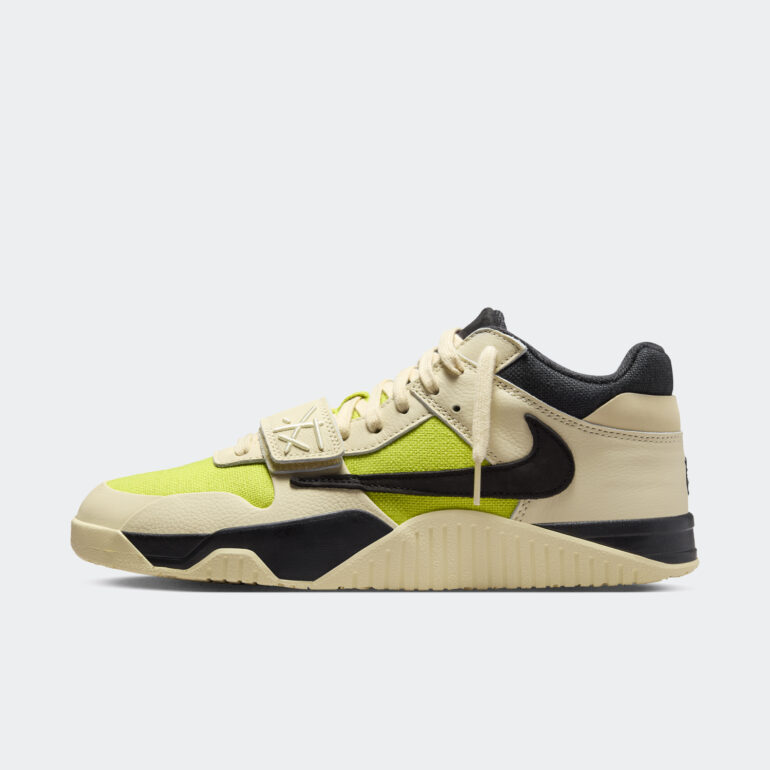 Mit dem Stylecode FZ8117-102 bringt Travis Scott frischen Wind in seine Jumpman Jack-Linie. Der “Bright Cactus” Colorway kombiniert leuchtendes Neongelb auf Canvas-Basis mit Off-White-Leder-Overlays in „Muslin“ und setzt schwarze Akzente an Reverse Swoosh, Midsole und Zunge. Ein Midfoot-Strap sorgt für den nötigen Halt, während die Cactus Jack-Logos an Ferse und Outsole den Signature-Touch liefern. Als Extra gibt’s verschiedene Laces und eine passende Tote Bag im Box-Set.